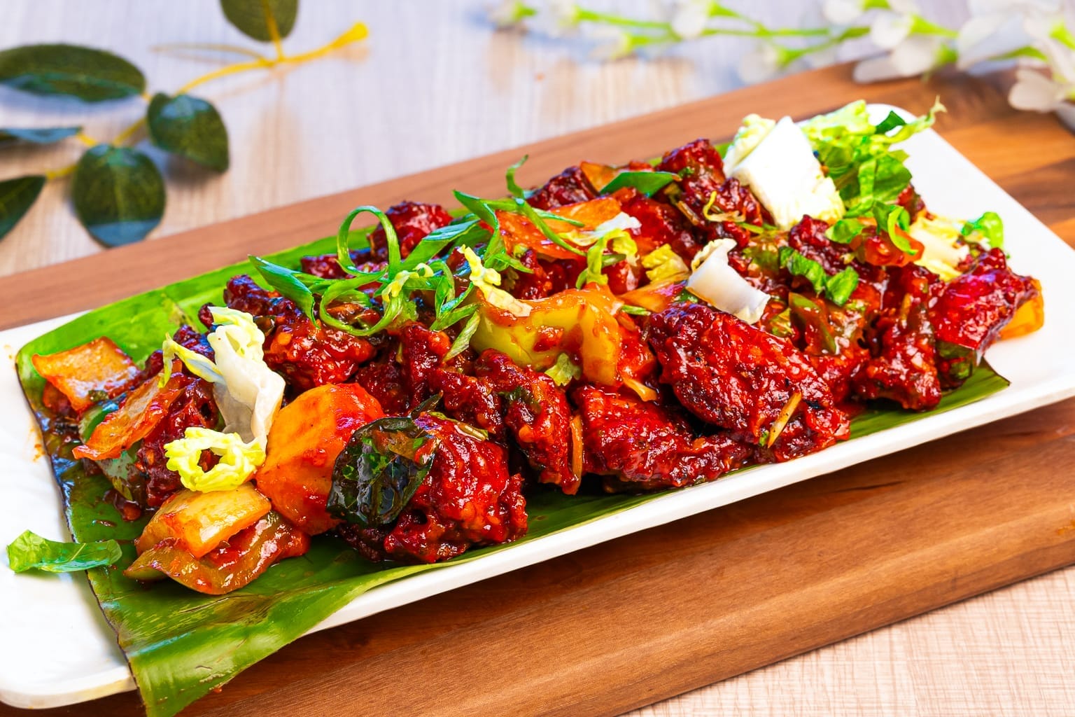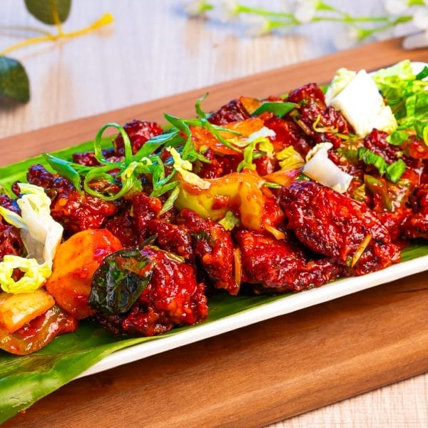 Mushroom 65 is a popular Indian appetizer made from marinated mushrooms coated in a spiced batter and deep-fried to perfection. The crispy exterior, combined with a flavorful blend of spices like red chili, garlic, and ginger, creates a tantalizing dish that’s both crunchy and savory. Perfect for snacking.