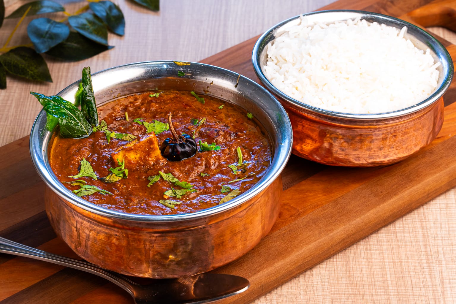 Paneer Chettinad is a flavorful South Indian curry made with paneer cubes cooked in a spicy, aromatic gravy. The dish features a unique blend of roasted spices, including fennel, cinnamon, and black pepper, creating a bold and tangy flavor. It pairs perfectly with rice, chapati, or paratha for a satisfying meal.